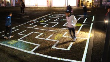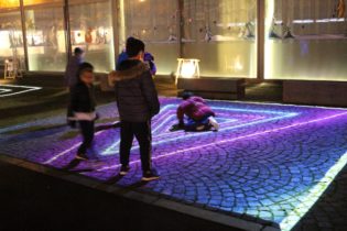 Air Jump est né ! Le concept fut de projeter des jeux vidéos géants sur le sol où chacun et chacune peut se positionner sur les écrans et éviter les monstres qui lui arrivent sous les pieds.