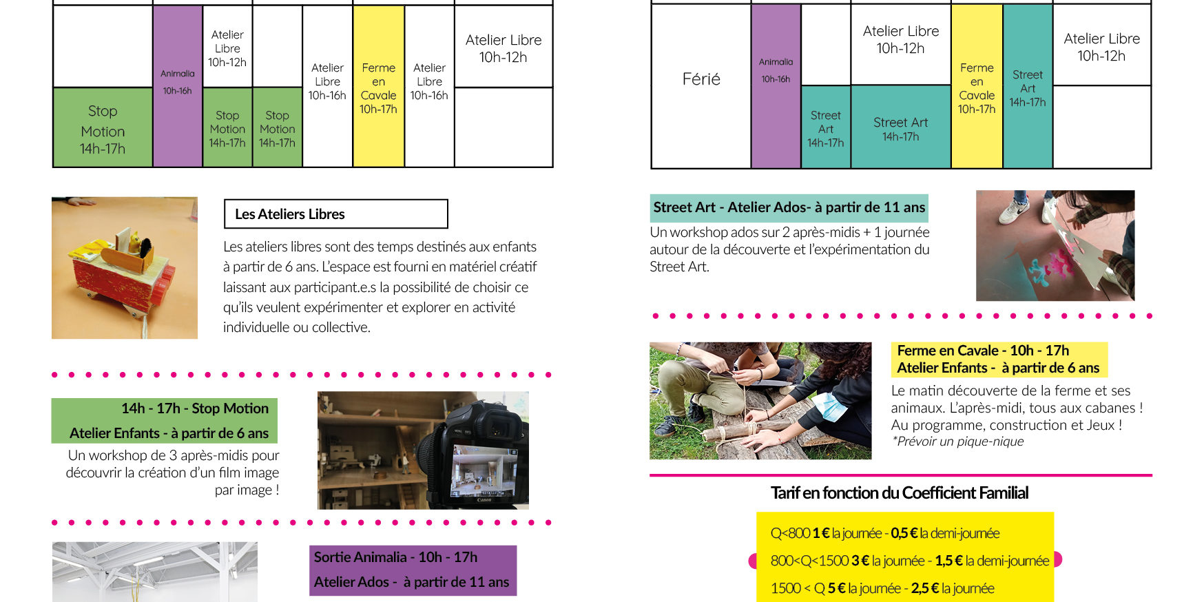 Au programme : des ateliers libres, des sorties, des visites, un workshop stop motion enfant, un workshop ado sur le street art.