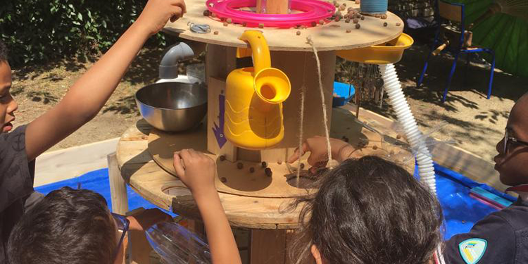 Un groupe d’enfants fréquentant Par Tout Artiste a pu concevoir les circuits de billes aux cotés de l’artiste Alexis Malbert @tapetronic > inventeur, bricoleur, musicien!