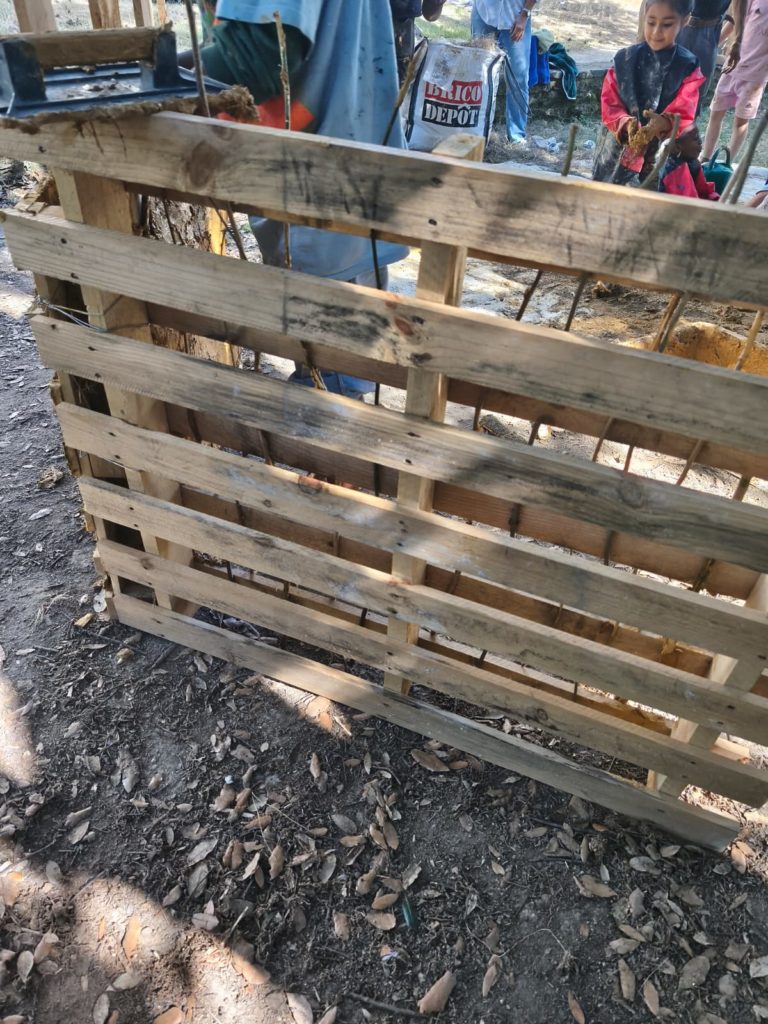 Et même sous la pluie on bricole! (vive les fils de scoubidous pour accrocher la bâche!). Et aussi on papote!