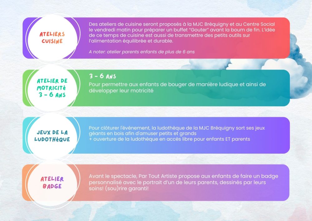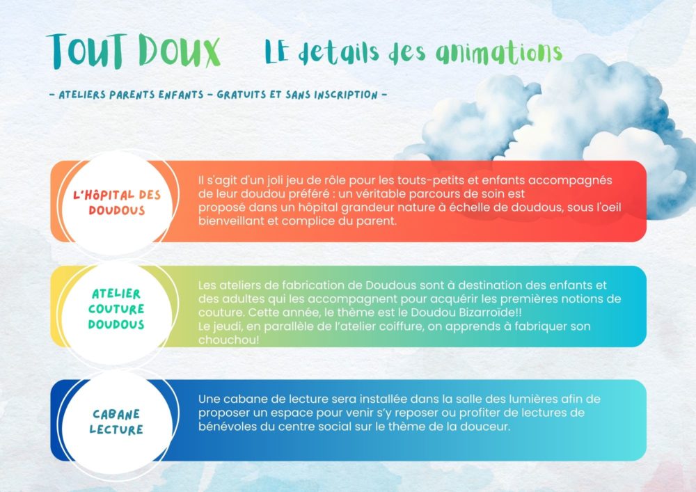 Jan82026Atelier parent-enfantEvénement Vous trouverez ci-dessous le programme détaillé de l’événement To Do Tout Doux pour cette édition 2026 ! Télécharger le flyer Catégorie Atelier parent-enfant, EvénementPar pta8 janvier 2026 Auteur pta Navigation de commentaireOnglet précédent Onglet précédent Les Courtes Soirées d’Hiver 2026Related PostsLes Courtes Soirées d’Hiver 20266 janvier 2026Exposition Le Songe d’une Pie29 octobre 2025Les malles créatives 2025!29 août 2025Quelques images de la Fête du Jeu et de la Parentalité, édition 2025!26 mai 2025Retour sur le vernissage de l’exposition « Charles Dullin, Retour Vers le Futur »26 mai 2025« Charles Dullin, retour vers le futur », la nouvelle exposition !!16 avril 2025