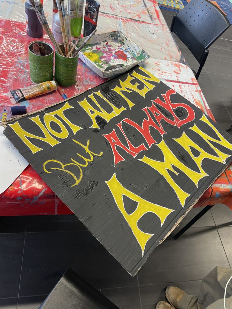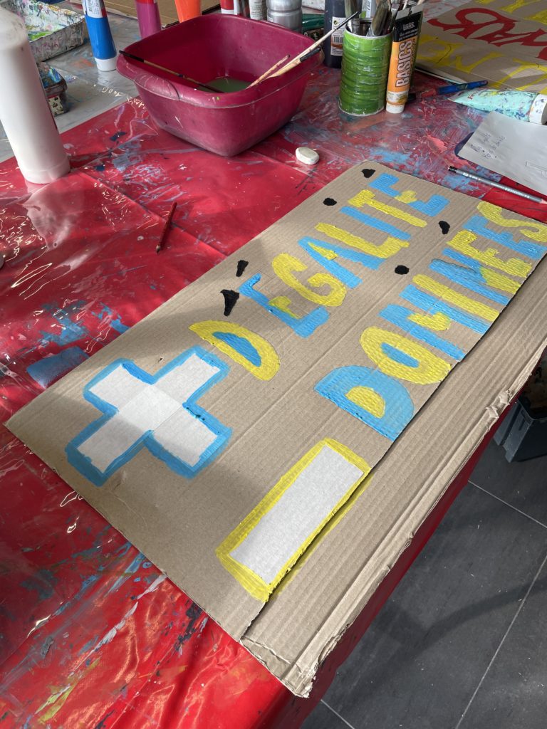 Atelier pancartes au Centre Social des Champs Manceaux en vue de la manifestation du 8 mars pour les droits des femmes!!