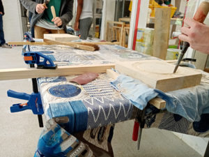 Par ailleurs, concernant certains workshops nous faisons appel à des artistes ou artisans pour co-construire avec eux le déroulé des séances et comment allier la pratique plastiques de l’intervenant.